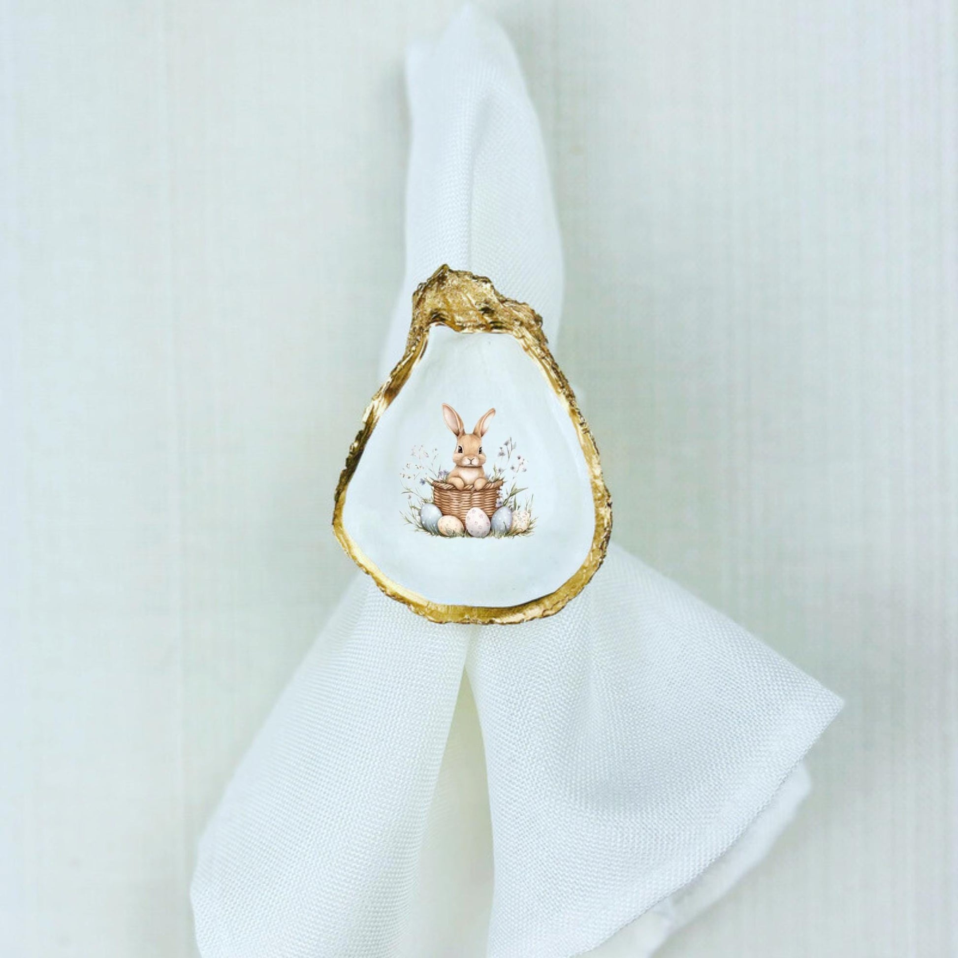 Easter Bunny Harvest Oyster Shell Rattan Napkin Ring